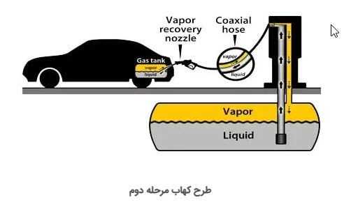 مرحله دوم: جمع آوری بخار بنزین از باک خودروها در هنگام سوخت گیری و انتقال آن به مخزن های جایگاه سوخت